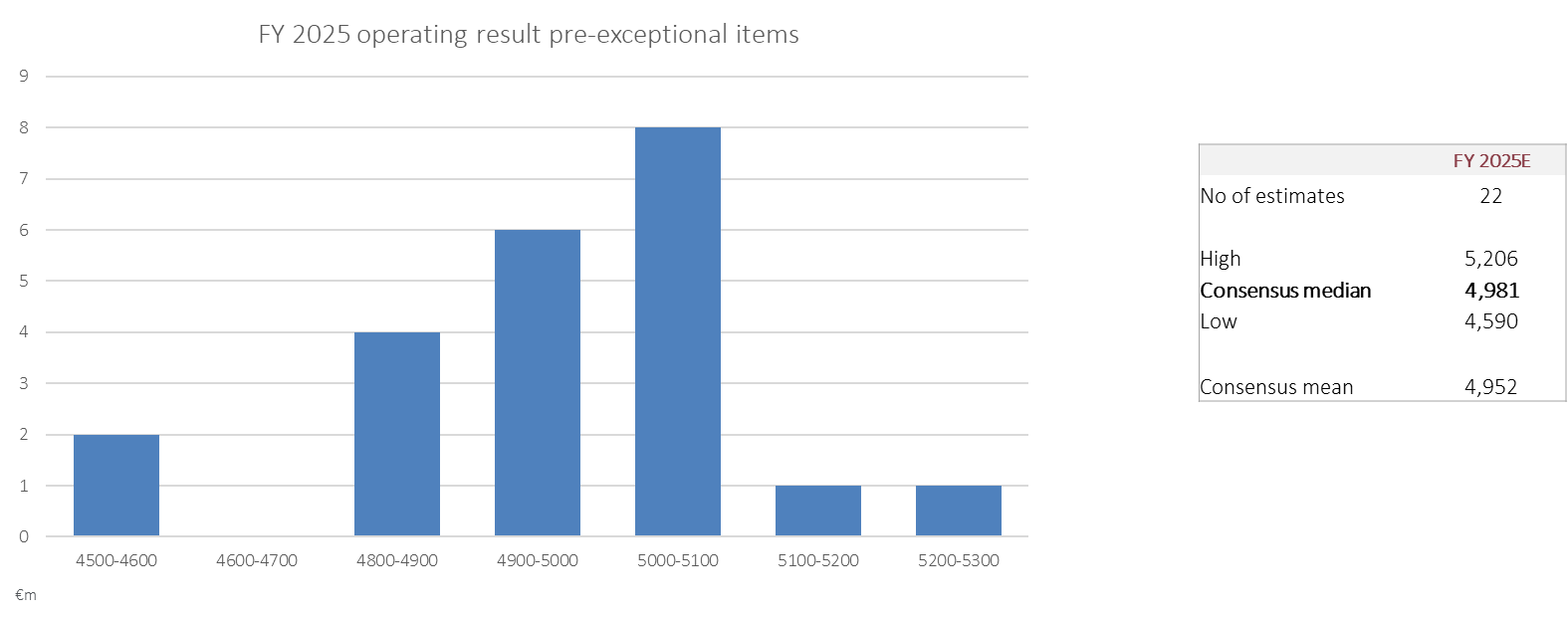The consensus has been collated from estimates submitted by analysts to IAG using a standard template. The information is provided purely for convenience to users of our website, for information purposes only.